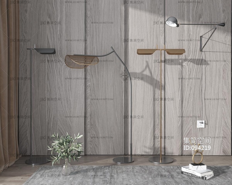 现代金属落地灯壁灯, 3d模型下载 [模型ID:94219]
