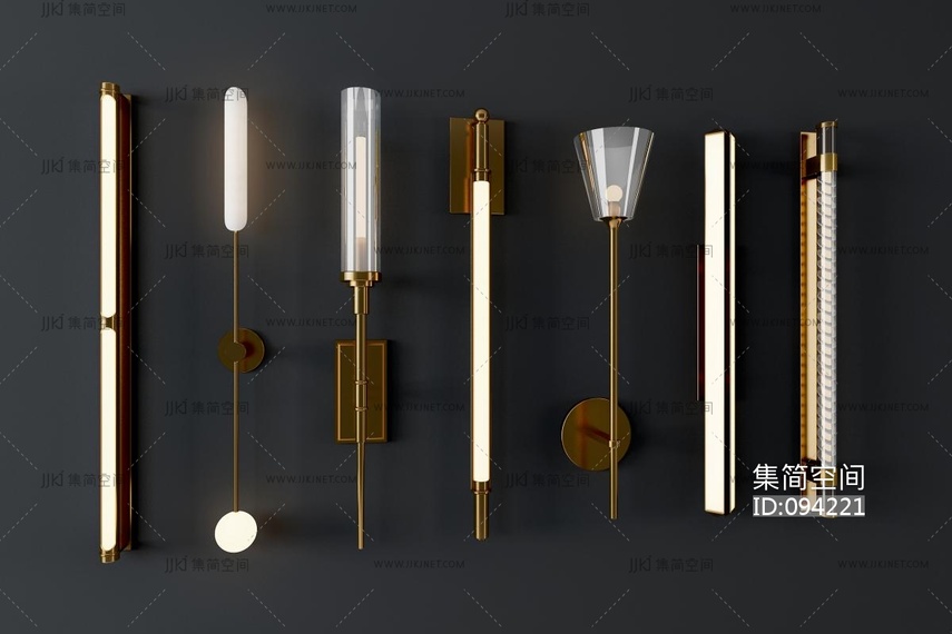 现代金属玻璃壁灯, 3d模型下载 [模型ID:94221]