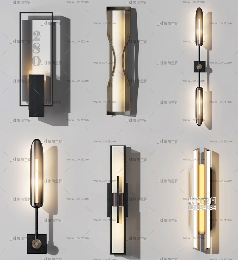 现代新中式金属壁灯, 3d模型下载 [模型ID:94234]