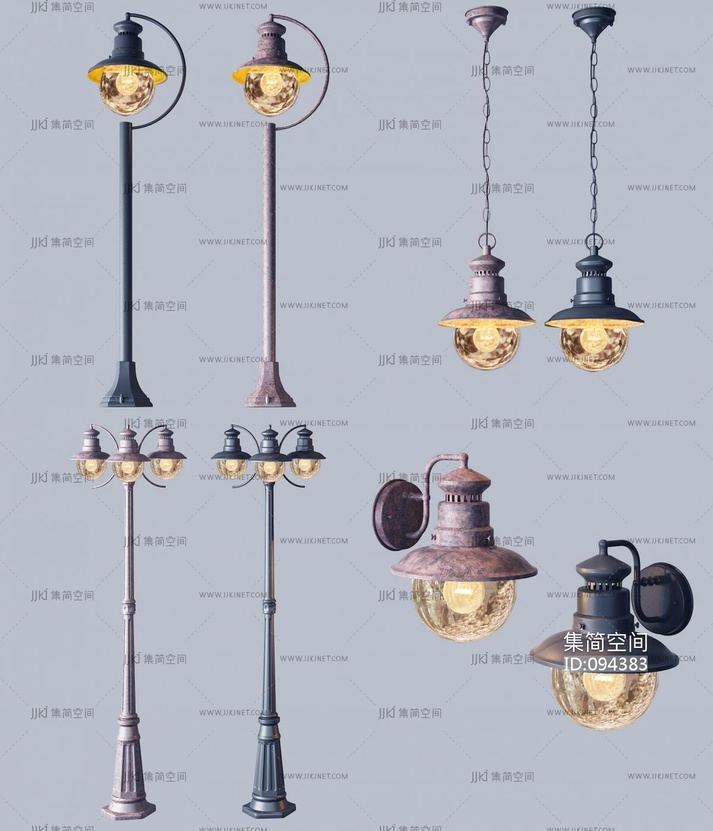 美式欧式铁艺户外壁灯组合3d模型下载