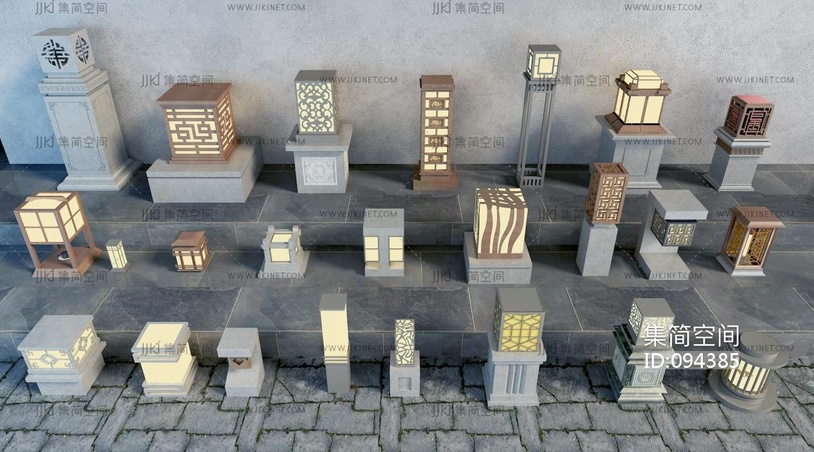 新中式铁艺草坪灯,落地灯景观灯3d模型下载