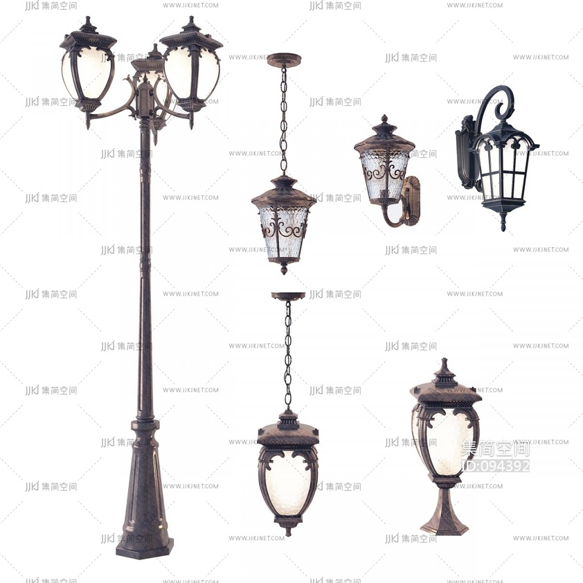 美式欧式铁艺户外壁灯组合3d模型下载