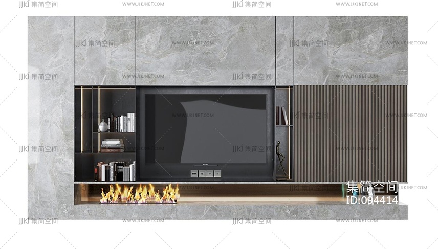 现代大理石电视背景墙,火炉 3d模型下载 [模型ID:94414]