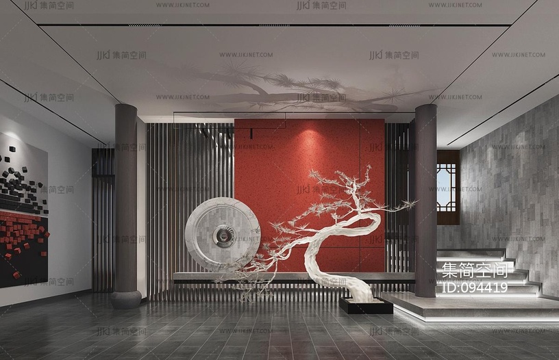 新中式会所门厅 3d模型下载 [模型ID:94419]