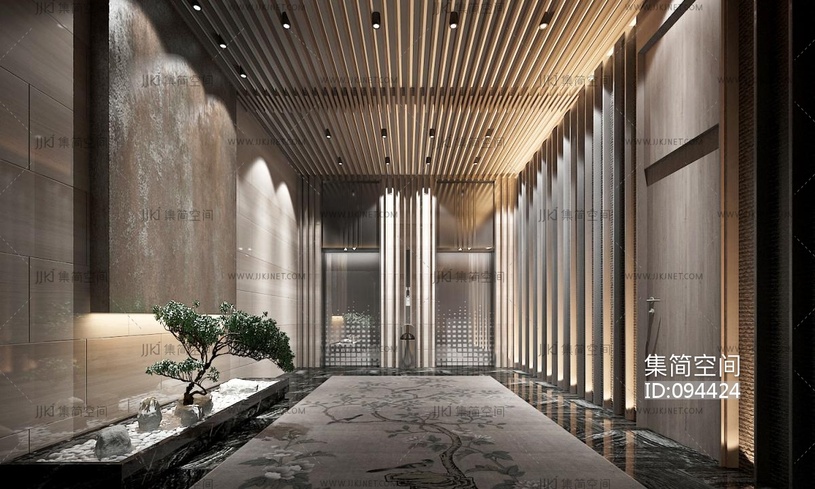 新中式酒店会所电梯厅 3d模型下载 [模型ID:94424]