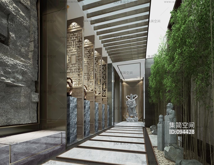 中式会所酒店走廊 3d模型下载 [模型ID:94428]