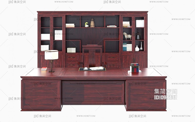 中式实木书柜 3d模型下载 [模型ID:94438]