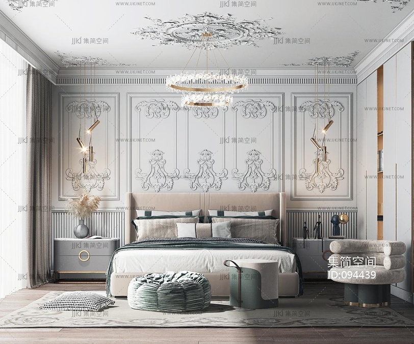 欧式轻奢卧室 3d模型下载 [模型ID:94439]