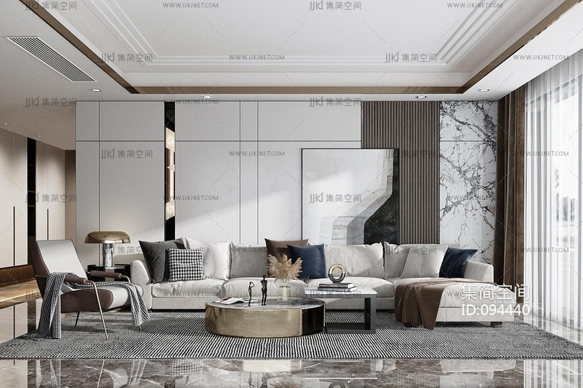33-12-04现代客厅,布艺转角沙发,单人休闲椅 3d模型下载 [模型ID:94440]