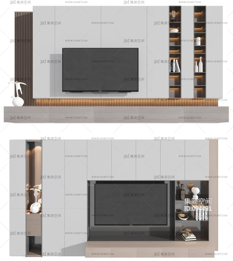 现代简约电视背景墙, 3d模型下载 [模型ID:94491]
