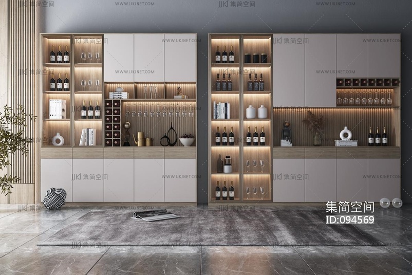 现代轻奢玻璃酒柜 3d模型下载 [模型ID:94569]