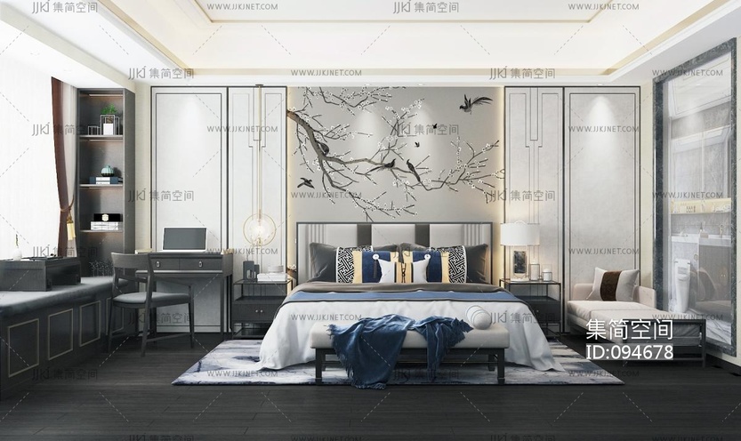 卧室,轻奢,暗黑风,现代轻奢卧室双人床,懒人沙发法式卧室3d模型下载