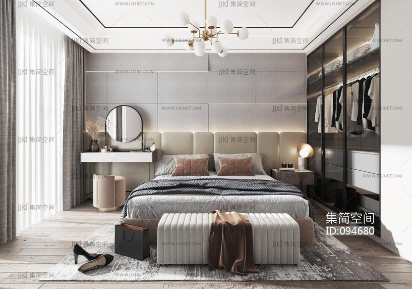 现代简约轻奢卧室 3d模型下载 [模型ID:94680]