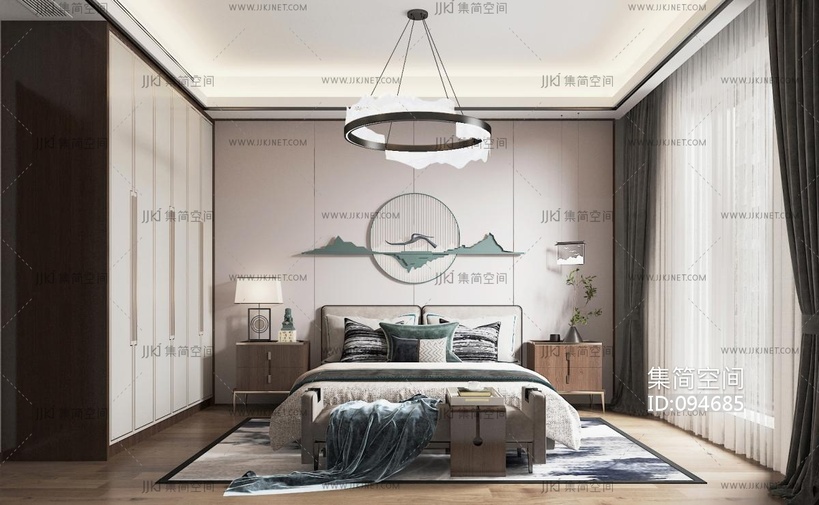 新中式卧室 3d模型下载 [模型ID:94685]