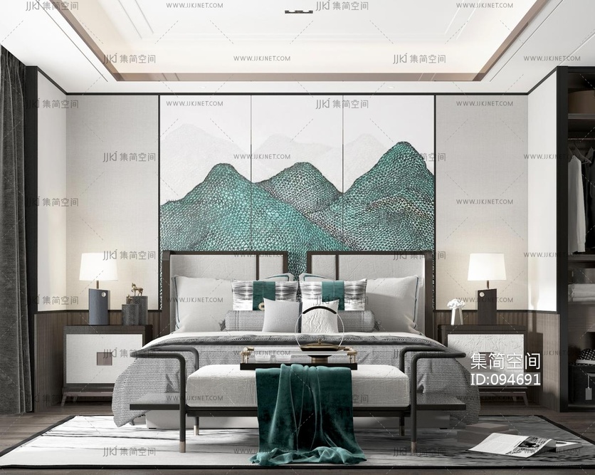 卧室,轻奢,暗黑风,现代轻奢卧室双人床,懒人沙发法式卧室3d模型下载