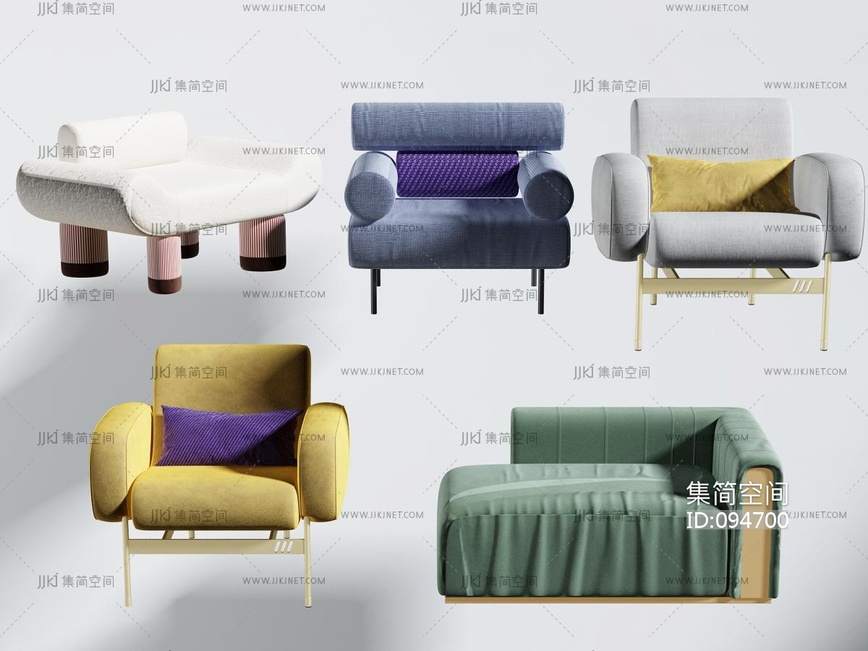 现代单人沙发卧榻,贵妃椅 3d模型下载 [模型ID:94700]