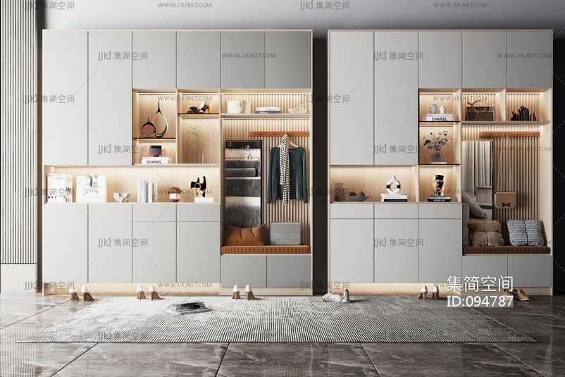 现代轻奢入户鞋柜 3d模型下载 [模型ID:94787]