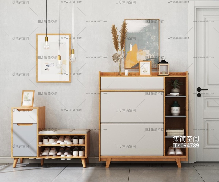 北欧原木鞋柜换鞋凳 3d模型下载 [模型ID:94789]