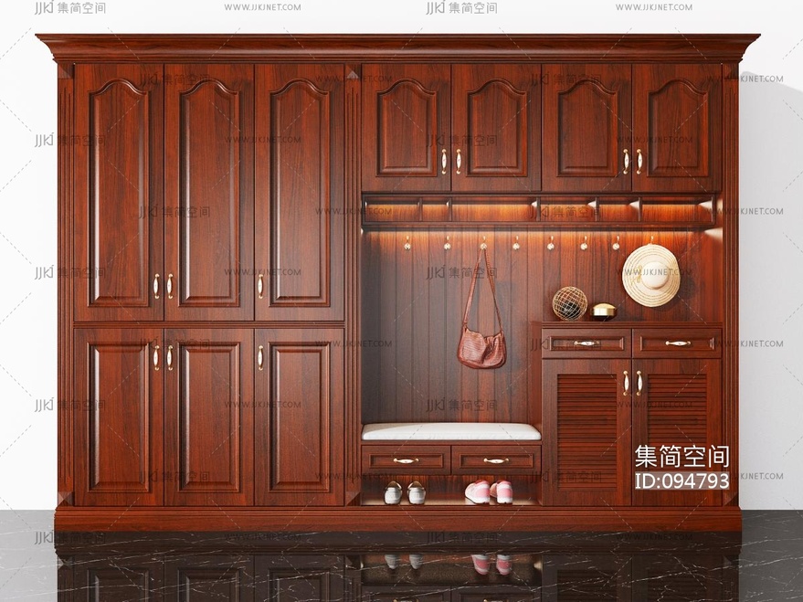 美式实木多功能入户鞋柜, 3d模型下载 [模型ID:94793]
