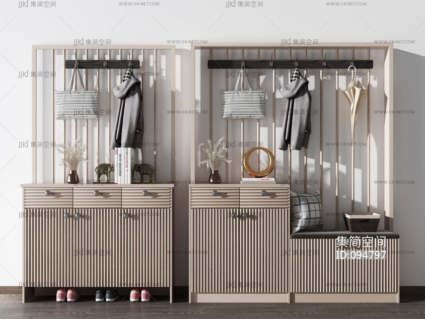 现代多功能鞋柜,换鞋凳 3d模型下载 [模型ID:94797]