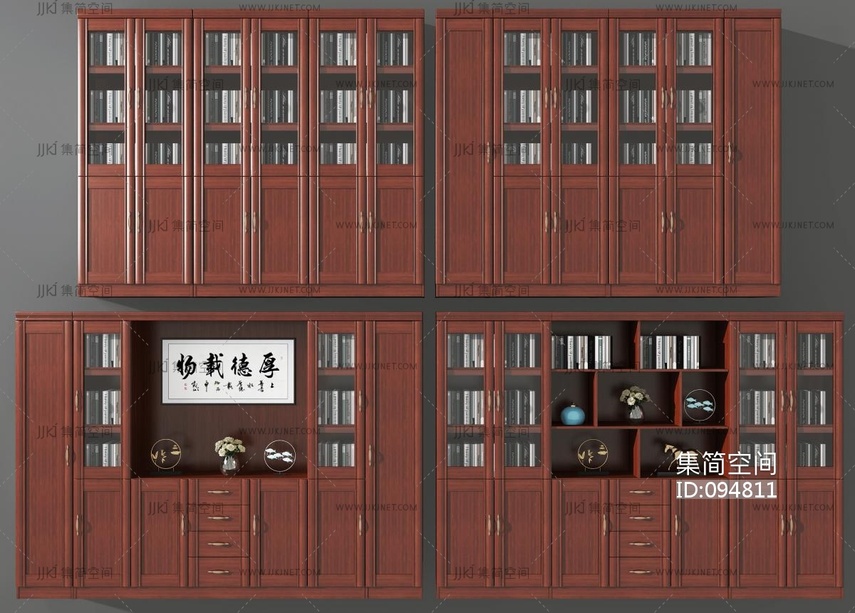 25-11-24新中式实木文件柜,书柜 3d模型下载 [模型ID:94811]