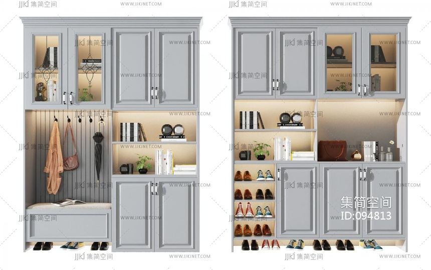 美式多功能入户鞋柜, 3d模型下载 [模型ID:94813]