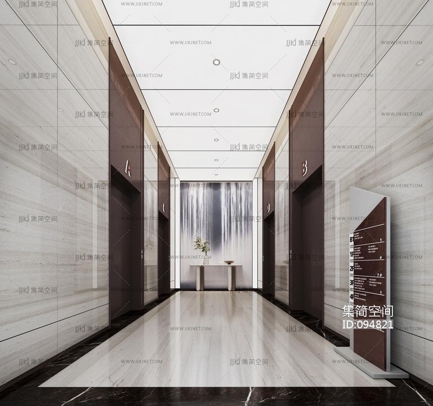 现代轻奢酒店电梯间 3d模型下载 [模型ID:94821]