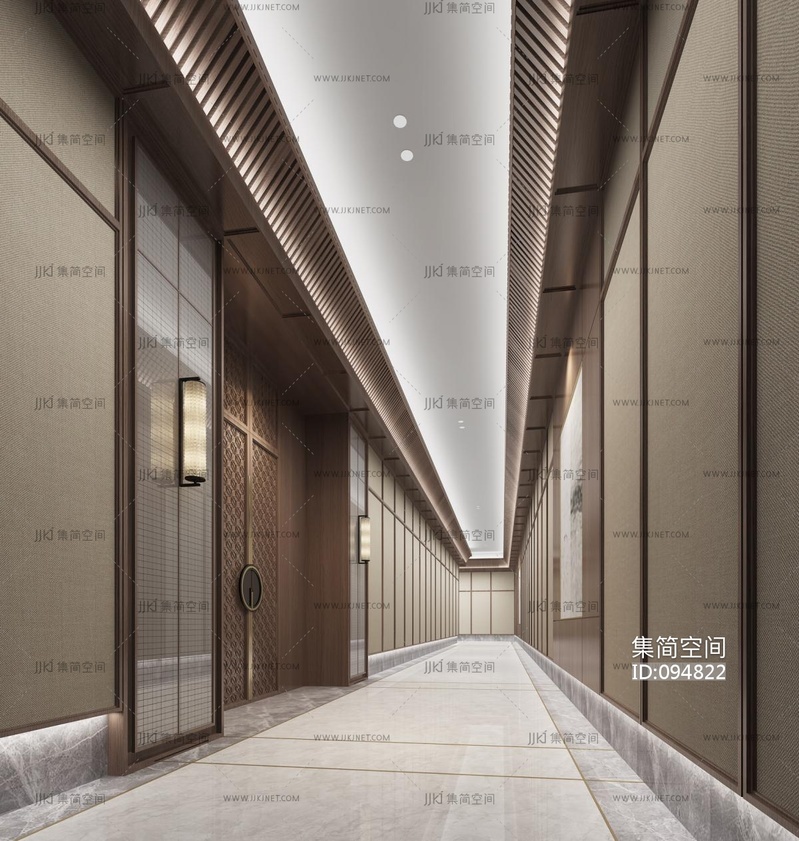 新中式酒店走廊过道, 3d模型下载 [模型ID:94822]