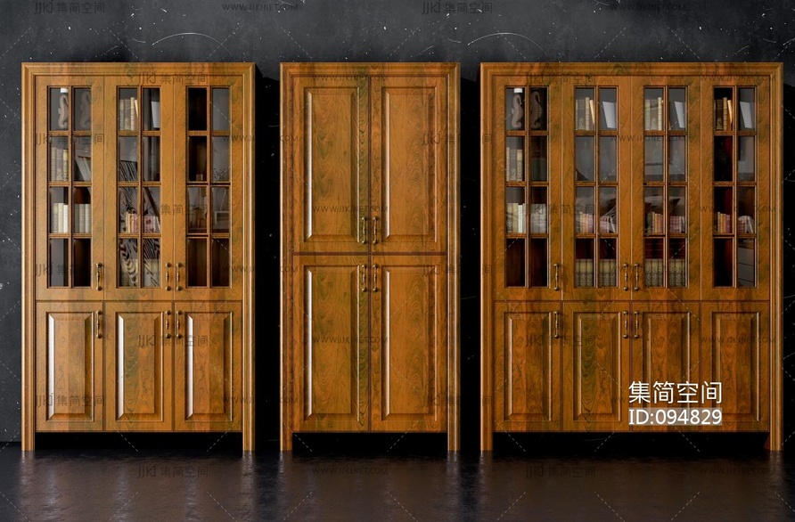 美式实木书柜, 3d模型下载 [模型ID:94829]