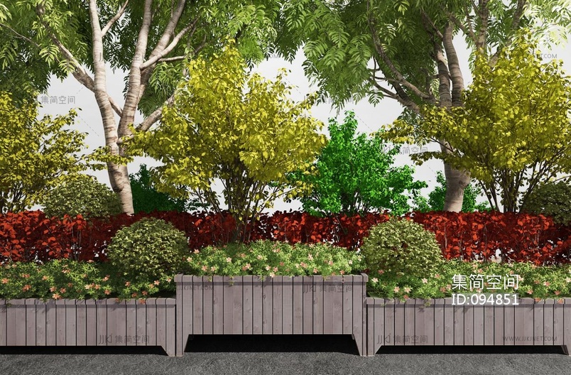 现代户外花槽景观树,花池 3d模型下载 [模型ID:94851]