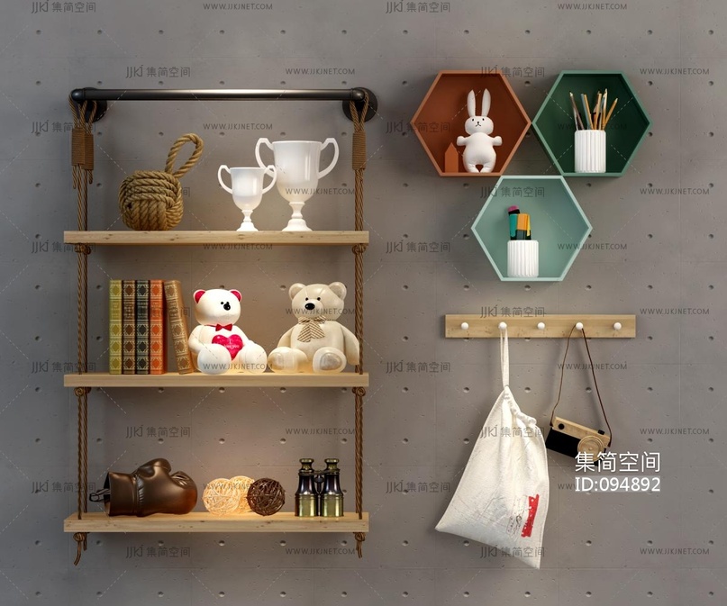 北欧吊柜装饰品,隔板置物架3d模型下载