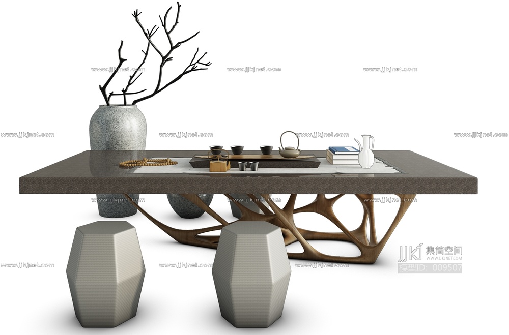H06-0906中式茶桌组合 3d模型下载 [模型ID:9507]