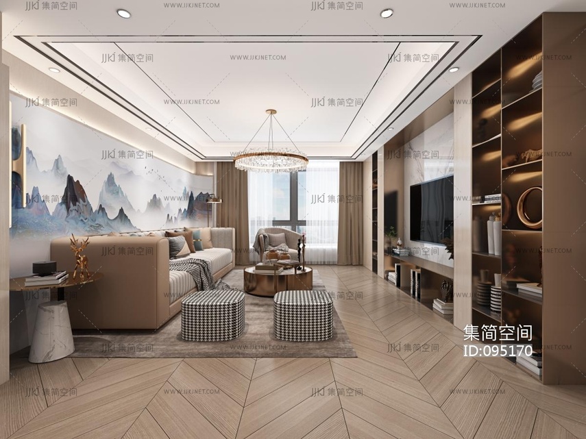 030新中式客餐厅 3d模型下载 [模型ID:95170]