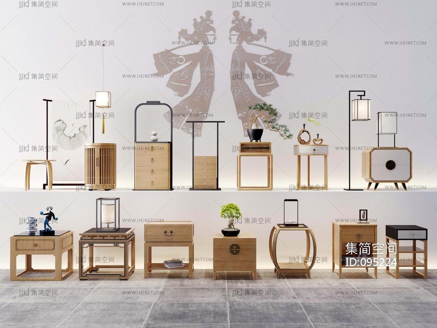 新中式边几圆几组合 3d模型下载 [模型ID:95224]