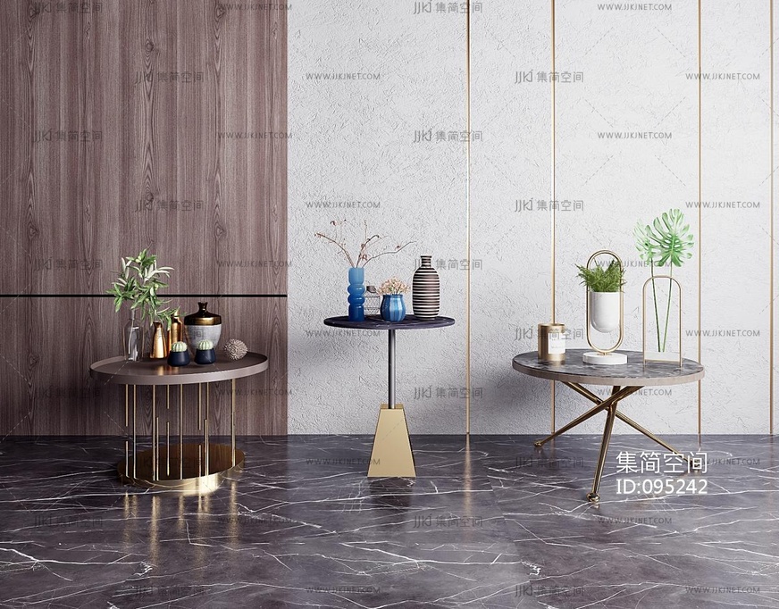 现代轻奢边几圆几组合 3d模型下载 [模型ID:95242]