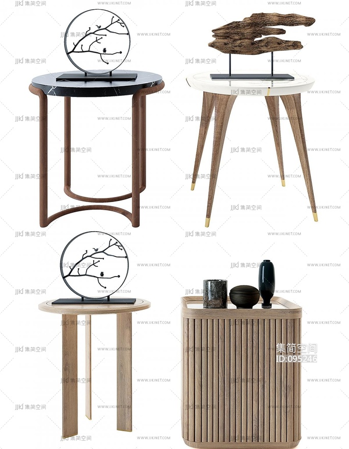 新中式实木圆几组合 3d模型下载 [模型ID:95246]