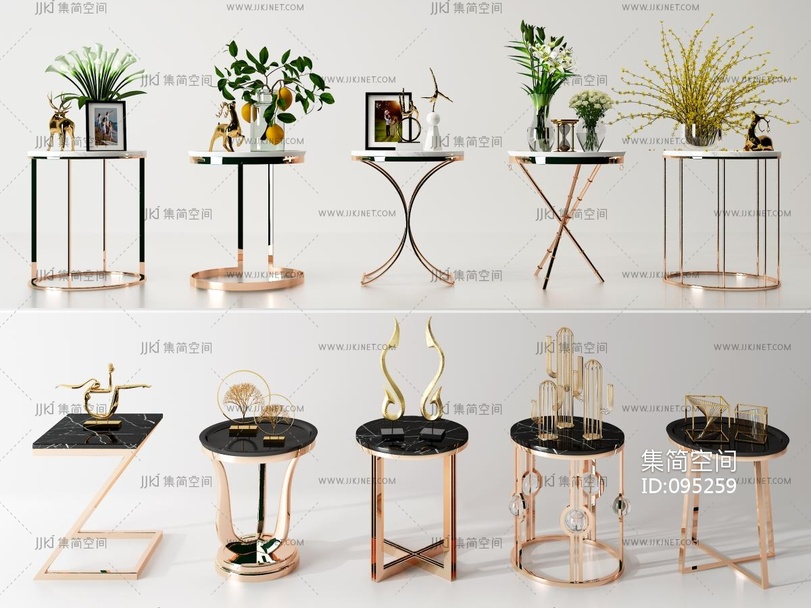 07-欧式金属大理石咖啡桌,圆形边几3D模型crrr3d模型下载