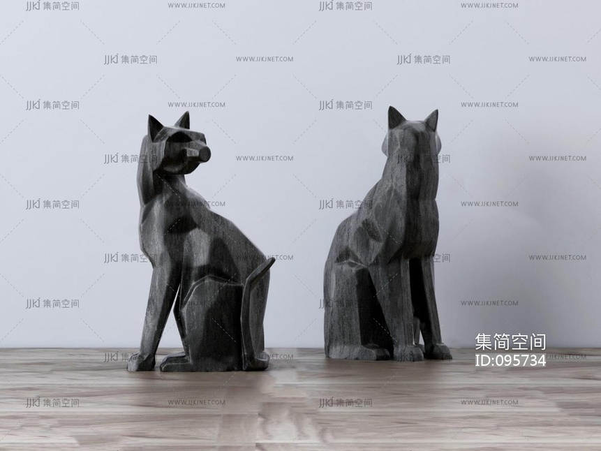 几何动物狐狸动物雕塑,饰品 3d模型下载 [模型ID:95734]