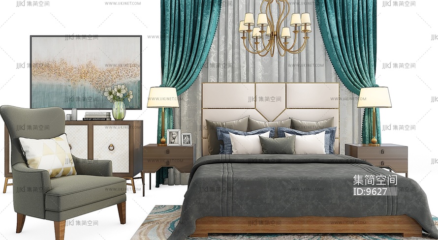 H02-1022简欧床装饰柜 3d模型下载 [模型ID:9627]