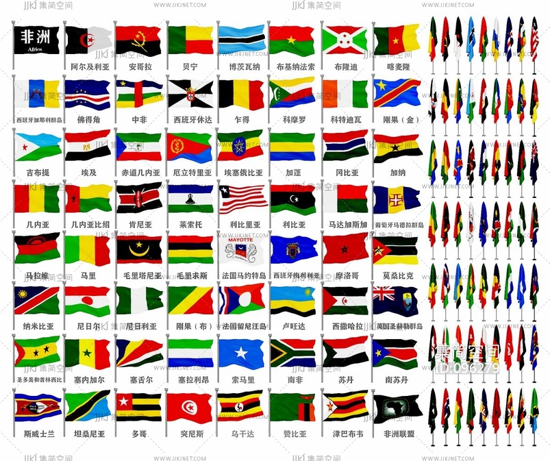 现代非洲各国国旗 3d模型下载 [模型ID:96279]