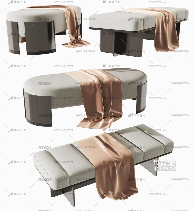 现代布艺床尾凳脚踏 3d模型下载 [模型ID:96282]