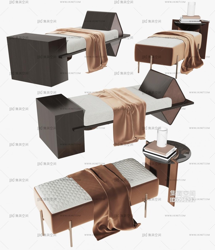 现代轻奢床尾凳,角几饰品摆件,3d模型下载