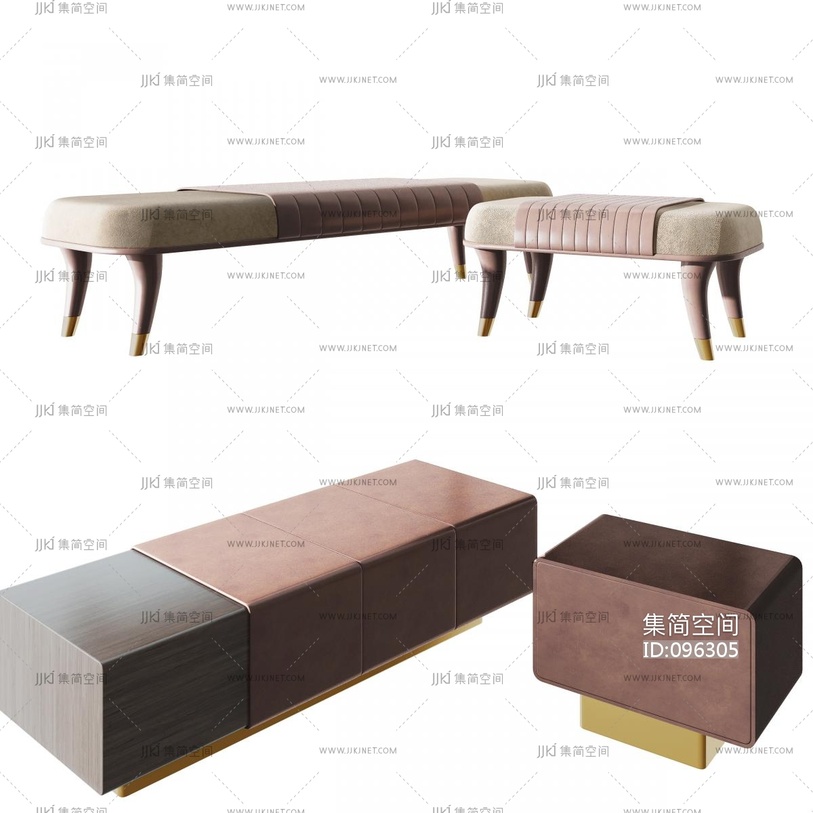 现代轻奢床尾凳脚踏 3d模型下载 [模型ID:96305]