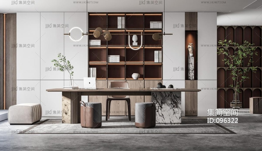 06现代书房,书桌椅,书柜 3d模型下载 [模型ID:96322]