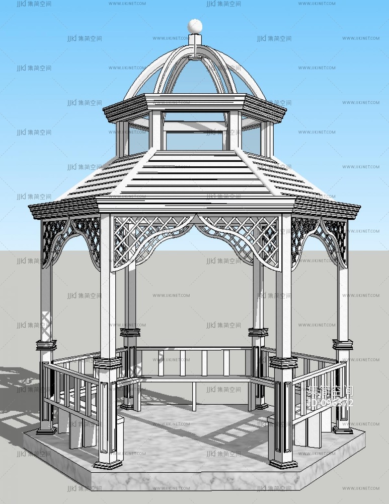 欧式凉亭 su草图模型下载 [模型ID:96372]
