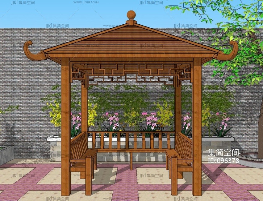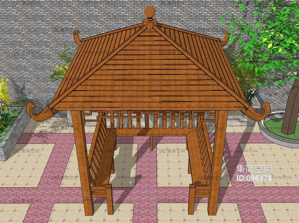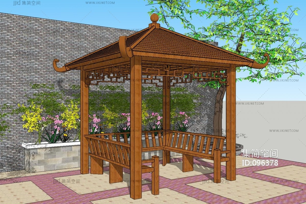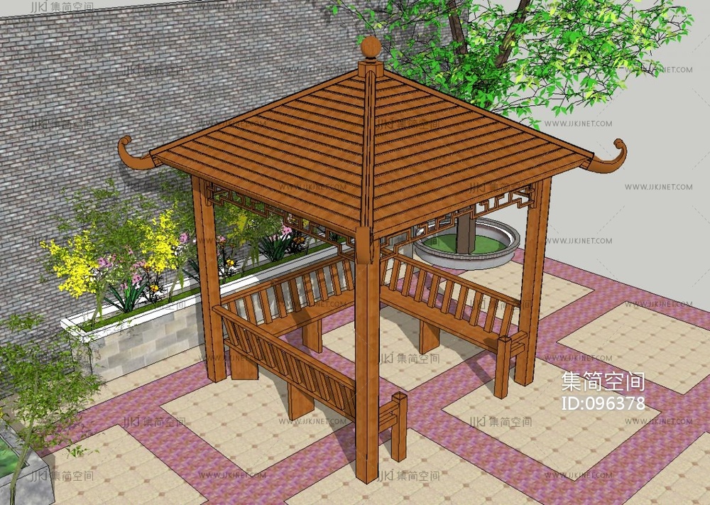 新中式庭院凉亭 su草图模型下载 [模型ID:96378]
