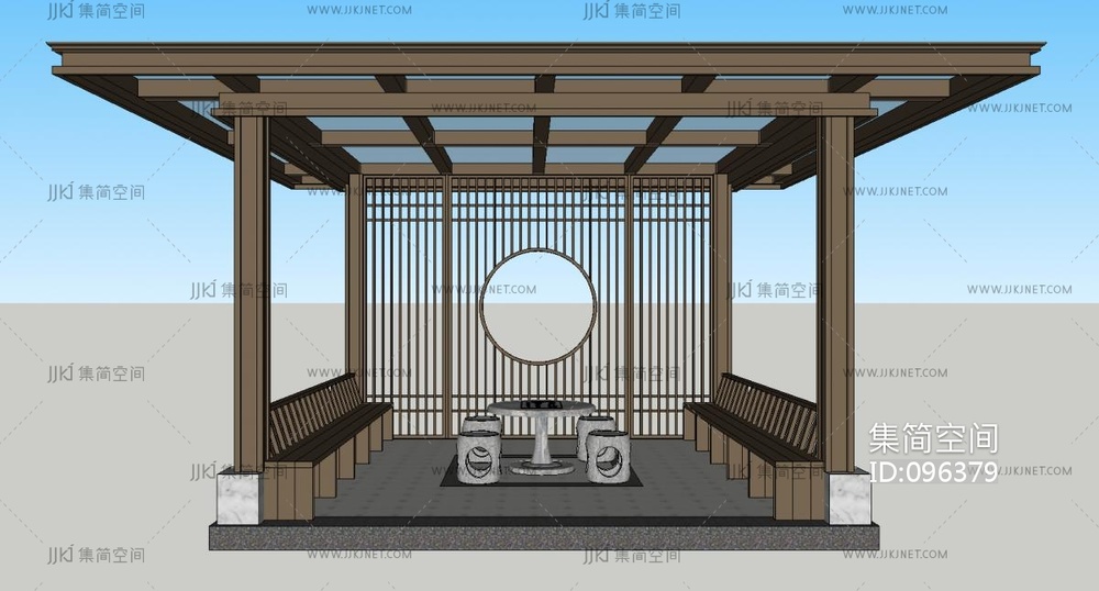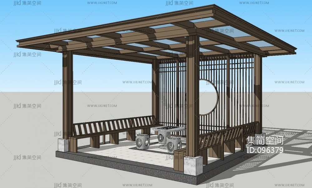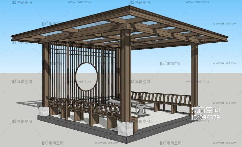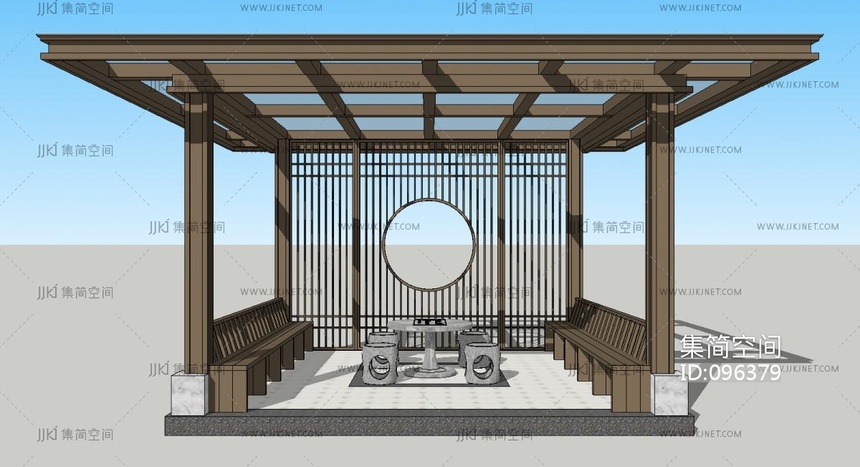 新中式户外凉亭 su草图模型下载 [模型ID:96379]