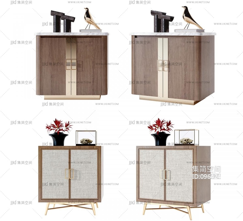 新中式方形床头柜, 3d模型下载 [模型ID:96424]