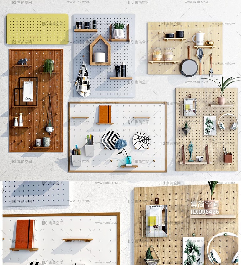 北欧洞洞板壁挂置物架 3d模型下载 [模型ID:96426]