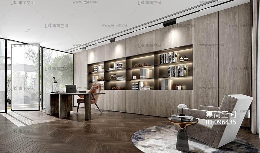 现代轻奢书房 3d模型下载 [模型ID:96435]